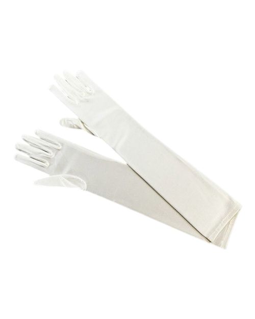 Elevate any look with our white satin gloves, the perfect accessory for formal occasions and stage performances. Crafted from smooth satin for a sleek finish, these gloves offer a comfortable fit while adding timeless sophistication.